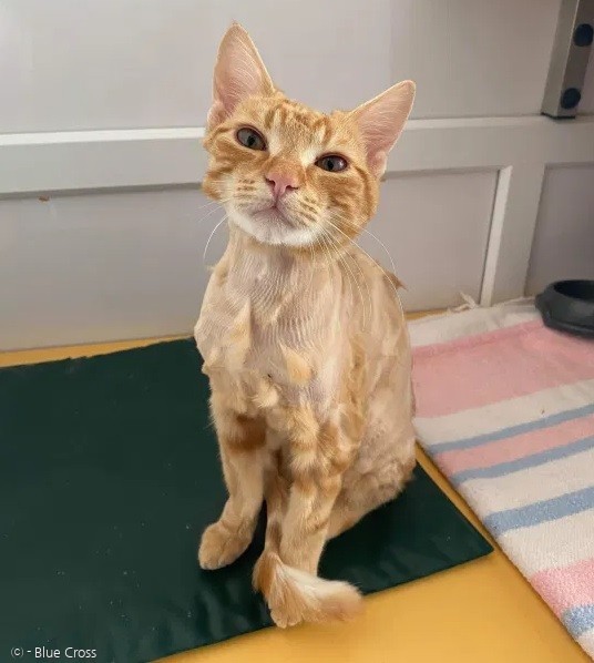 7개월령 황색 고양이 ‘로니’도 이런 경우다. 영국 잉글랜드 데번 토베이에 있는 블루 크로스 재입양센터에 들어올 당시 로니의 모습은 볼썽사나웠다. 집사가 벼룩을 없애려고, 로니의 털을 마구잡이로 밀었기 때문이다.
