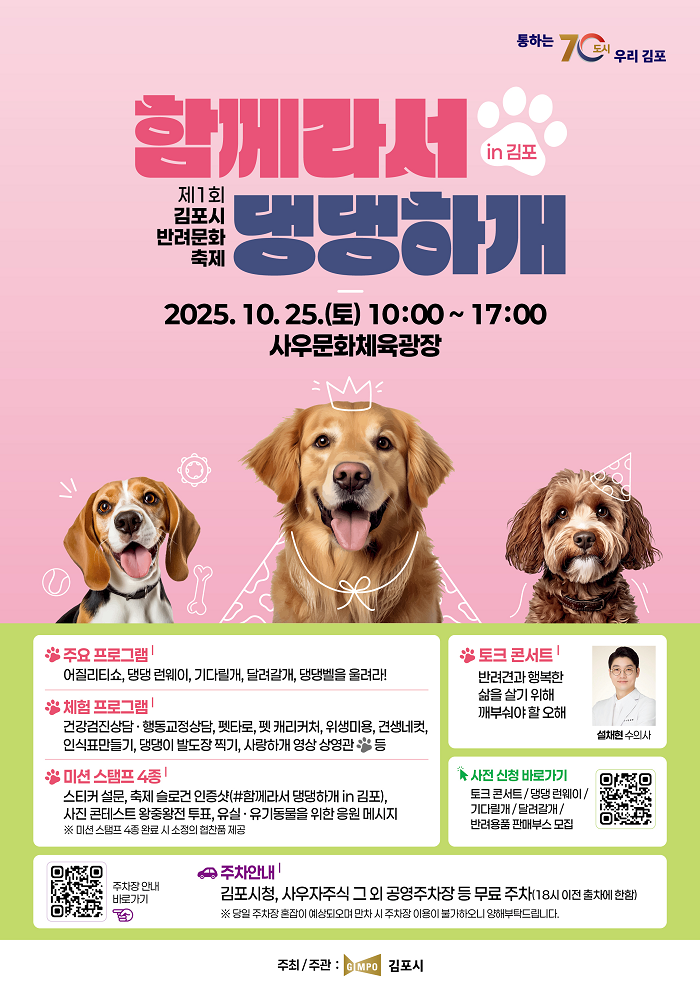 [노트펫] 경기 김포시는 반려동물과 시민이 함께하는 문화의 장인 제1회 김포시 반려문화축제 '함께라서 댕댕하개 in 김포'가 오는 25일 사우문화체육광장에서 개최된다고 14일 밝혔다.