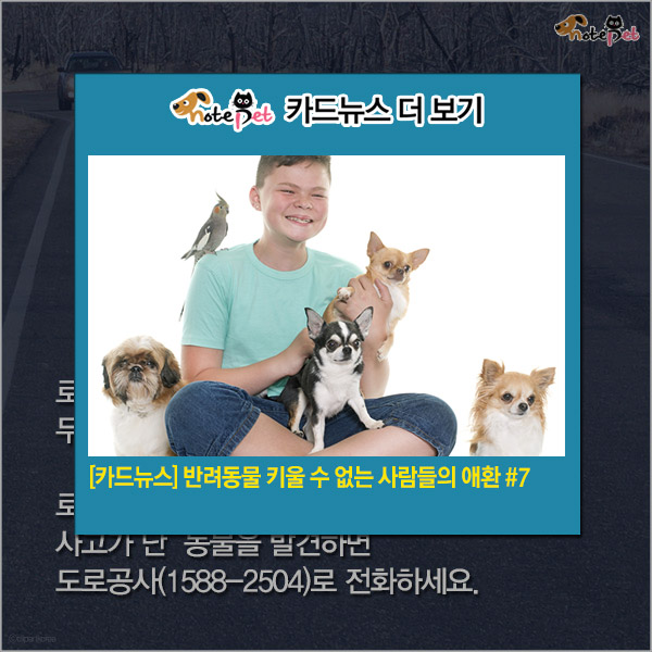 로드킬 예방하는 5가지 방법 이진주 기자 pearl@inbnet.co.kr 작성일: 2016.06.22 23:00:00 7 0 가 이전 다음 1/14 ⓒ 반려동물 뉴스 노트펫, 무단전재 및 재배포 금지 URL복사 URL로 공유시 전체 선택하여 복사하세요. 닫기 7 목록