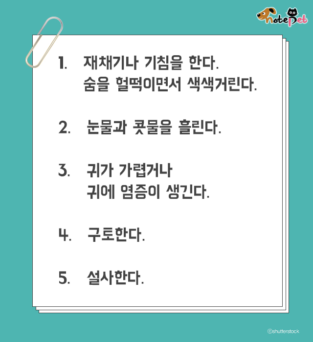 -재채기나 기침을 한다. 숨을 헐떡이면서 색색거린다.