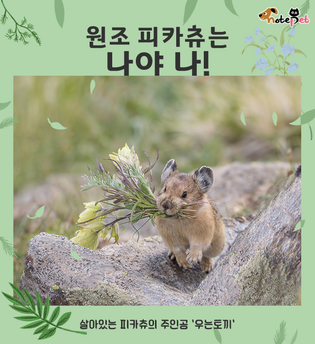 원조 피카츄는 나야 나! 최가은 기자 gan1216@inbnet.co.kr 작성일: 2018.07.01 23:00:00 4 0 가 이전 다음 1/10 우는토끼[Pika] 새앙토끼 또는 쥐토끼라고도 한다.꼬리가 매우 짧고, 머리뼈는 편평하다. 귀는 둥글고 작으며, 앞발과 뒷발의 아랫면에는 털이 있다.계절에 따라 털갈이를 하며 여름털은 붉은 갈색,겨울털은 잿빛 갈색 또는 어두운 갈색이다. 해발고도 2,000m까지의 고지대에서 서식한다. 건조한 바위가 많이 있는 곳을 좋아하고, 무리를 이루어 살며 밤낮을 가리지 않고 활동한다. ⓒ 반려동물 뉴스 노트펫, 무단전재 및 재배포 금지 URL복사 URL로 공유시 전체 선택하여 복사하세요. 닫기 4 목록