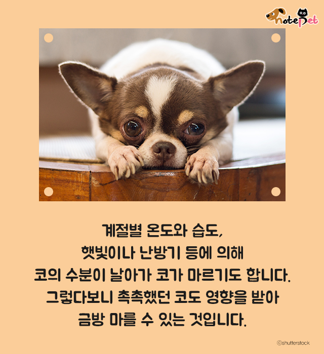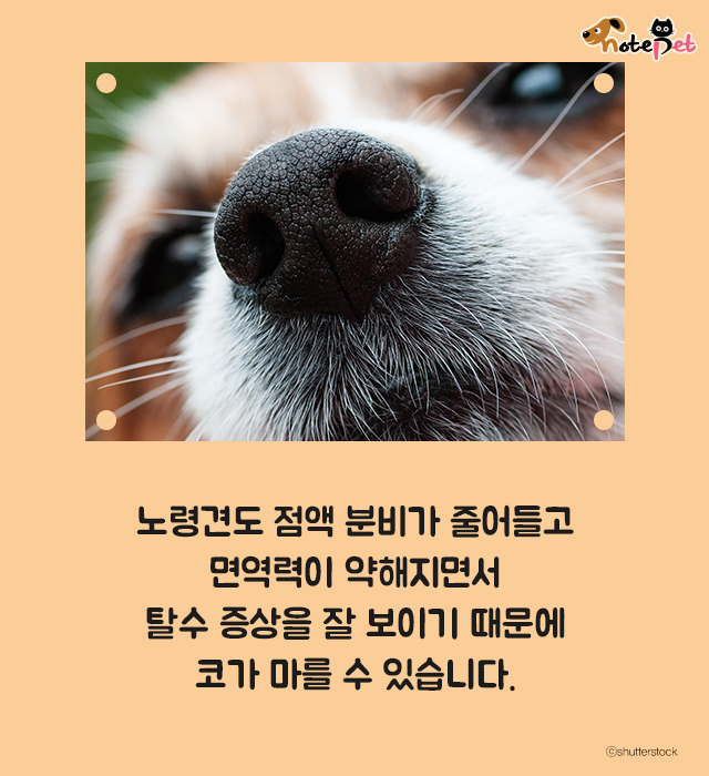 코의 수분이 날아가 코가 마르기도 합니다.