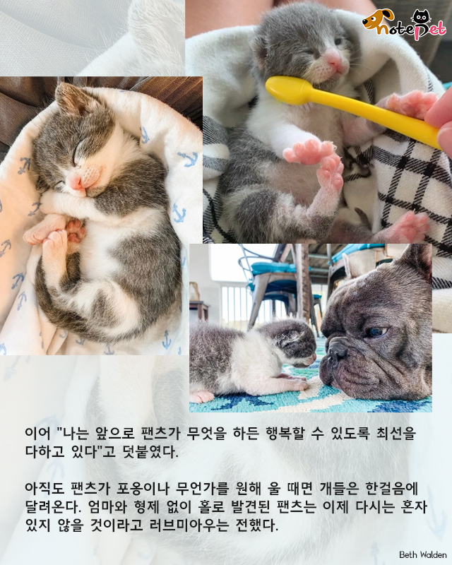 고아된 새끼고양이 울면 달려와 돌봐주는 개들.."혼자가 아냐!" 최가은 기자 gan1216@inbnet.co.kr 작성일: 2019.11.08 09:00:00 14 0 가 이전 다음 1/7 [노트펫]고아가 된 새끼고양이의 가족이 돼준 개들이 있어 감동을 전하고 있다. 지난달 25일(현지 시각) 미국 고양이 전문매체 러브미아우(lovemeow)는 어미 없이 홀로 발견된 새끼고양이를 돌봐주는 개들의 사연을 소개했다. 미국 플로리다주에 살고 있는 여성 베스 월든(Beth Walden)은 지난달 1일 SNS에서 태어난 지 며칠 되지 않은 새끼고양이가 급히 도움이 필요하다는 소식을 접했다. ⓒ 반려동물 뉴스 노트펫, 무단전재 및 재배포 금지 URL복사 URL로 공유시 전체 선택하여 복사하세요. 닫기 14 목록