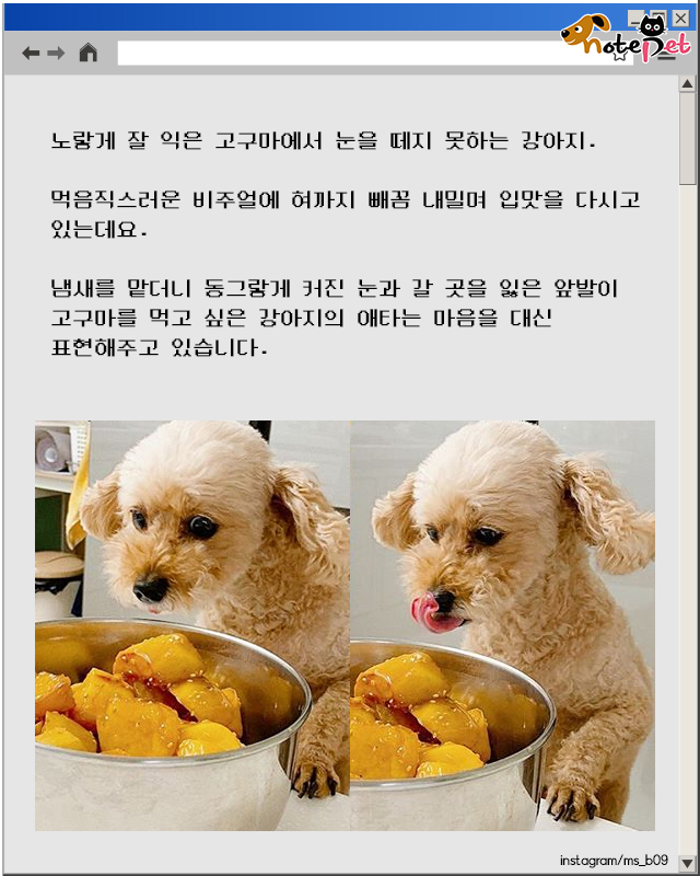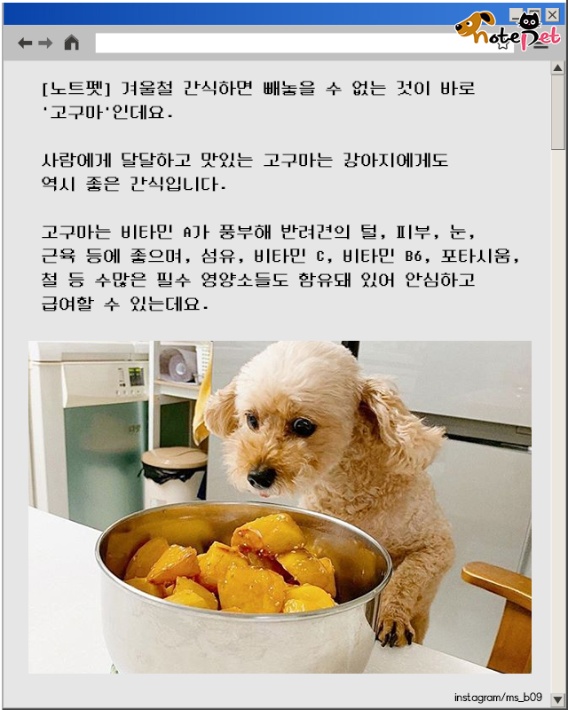 [노트펫] 겨울철 간식하면 빼놓을 수 없는 것이 바로 '고구마'인데요.
