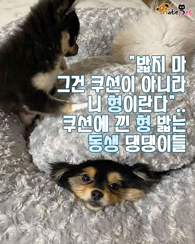 "밟지 마 그건 쿠션이 아니라 니 형이란다"..쿠션에 낀 형 밟는 동생 댕댕이
