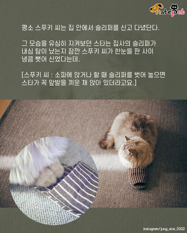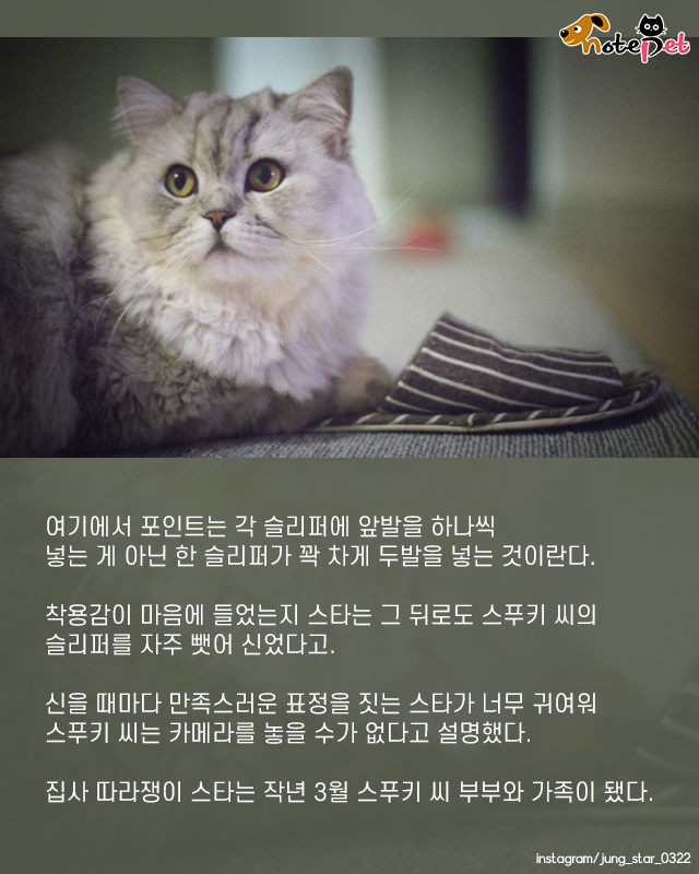 슬리퍼 신고 '완벽 홈룩' 뽐낸 집사 따라 하는 고양이.."이렇게 신는고냥?" 최가은 기자 gan1216@inbnet.co.kr 작성일: 2020.03.06 09:00:00 0 0 가 이전 다음 1/7 [노트펫] 외출을 할 때와 달리 집에서는 어떤 자세로 있던 편안한 옷차림을 선호하는 이들이 많을 것이다. 이 모습을 본 반려동물 중에는 종종 집사의 홈룩을 탐내며 훔쳐가는 아이들도 있는데. 고양이 '스타'의 집사인 스푸키 씨 역시 홈룩의 완성인 히든 아이템 슬리퍼를 냥이에게 빼앗겼다고 한다. ⓒ 반려동물 뉴스 노트펫, 무단전재 및 재배포 금지 URL복사 URL로 공유시 전체 선택하여 복사하세요. 닫기 0 목록