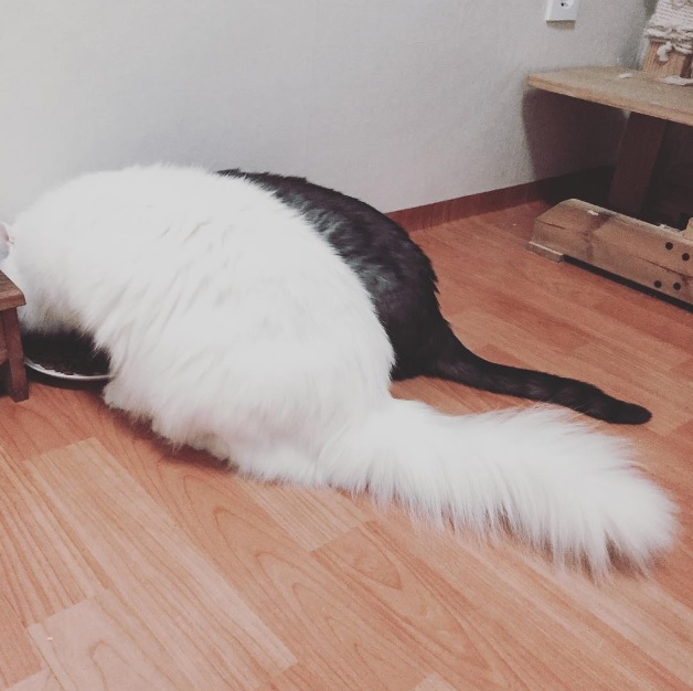 손수현의 슈&앙꼬, 굼벵이? 고양이? 박주영 기자 jju1441@inbnet.co.kr 작성일: 2015.10.20 14:39:07 0 0 가 19일 배우 손수현이 인스타그램에 "굼벵이들. #슈 #앙꼬"라는 글과 함께 반려묘의 사진을 게시했다. 사진 속 고양이 두마리는 손수현의 반려묘 슈와 앙꼬가 굼벵이처럼 등을 잔뜩 구부리고 식사를 하고있는 모습이다. ⓒ 반려동물 뉴스 노트펫, 무단전재 및 재배포 금지 0 목록