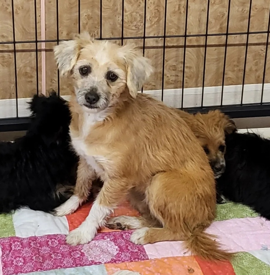 베이지색과 흰색털이 섞인 어미개는 몸무게 3Kg에 2020년생으로 추정된다. 새끼들은 몸무게 1.5kg으로 태어난 지 1~2개월 사이로 보인다.
