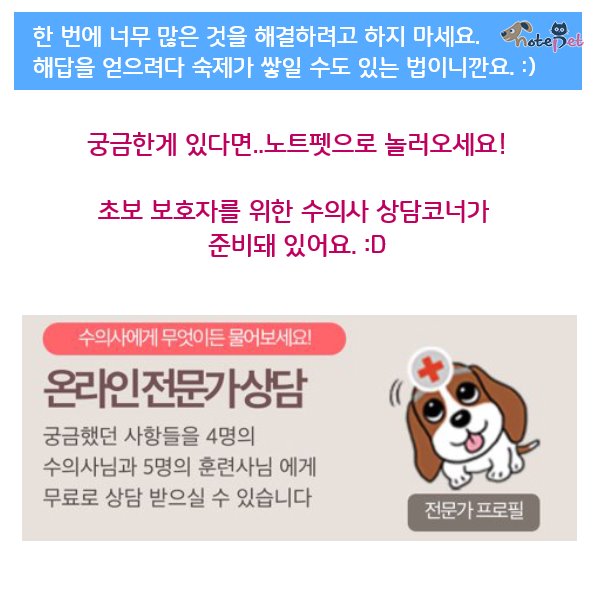 동물병원, 사용법! 김서연 기자 mainlysy@inbnet.co.kr 작성일: 2015.12.09 21:30:00 1 0 가 이전 다음 1/7 "우리 아이가 왜 이러는 걸까요..?" 노트펫 '전문가 상담'에 글을 남겨주시면 수의사의 답변을 받으실 수 있습니다. ⓒ 반려동물 뉴스 노트펫, 무단전재 및 재배포 금지 URL복사 URL로 공유시 전체 선택하여 복사하세요. 닫기 1 목록