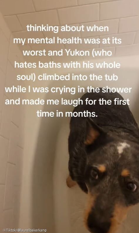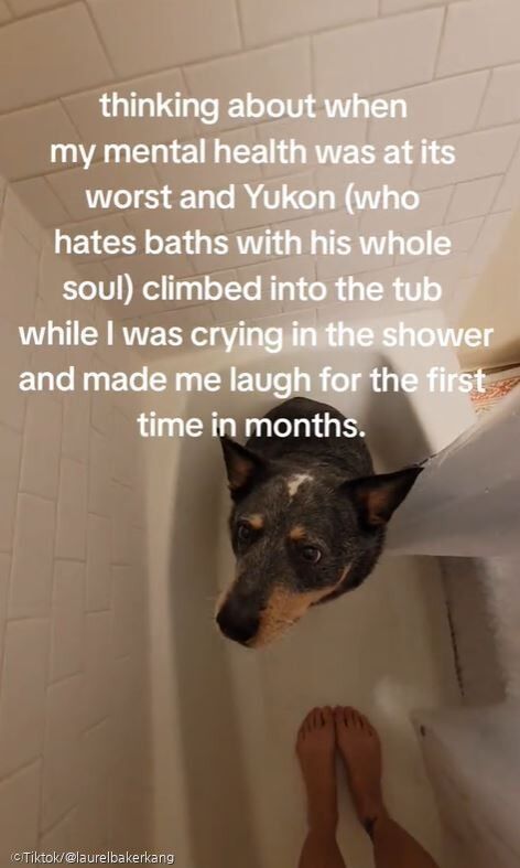 그것만으로 엄마는 큰 힘을 얻었습니다. 욕조 안에 들어와 왜 우냐고 묻는 듯 엄마를 쳐다본 유콘. 녀석 덕분에 엄마는 몇 달 만에 웃을 수 있었다네요.