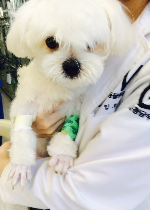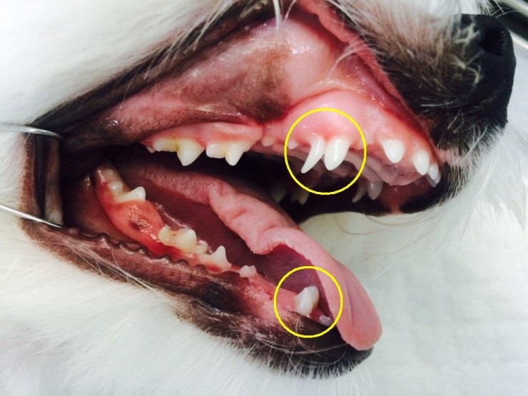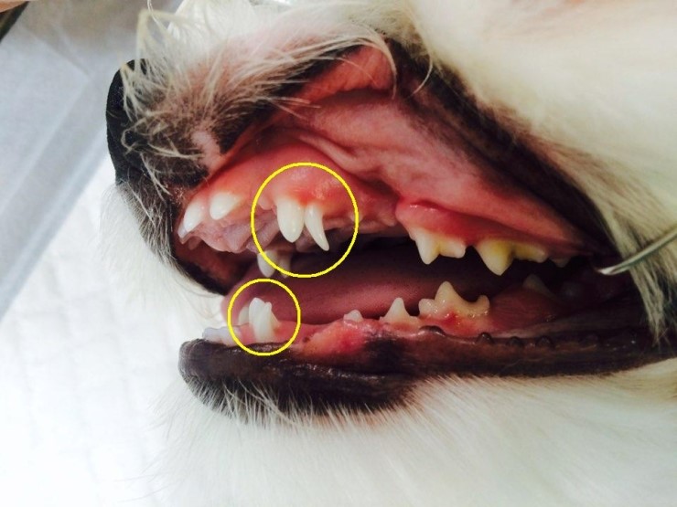 사진에서 보시다시피 산이는 양쪽 송곳니 4개 모두 안빠진 상태였습니다.