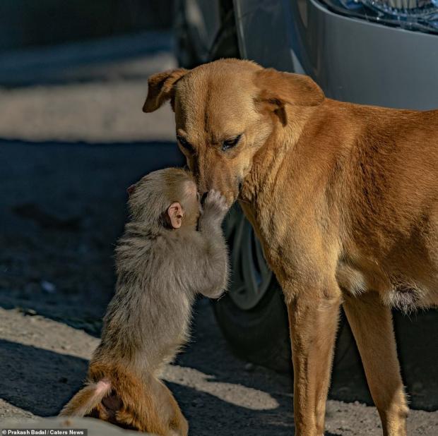 바달은 "새끼 원숭이는 어미가 농작물을 파괴해 현지인들에 의해 독살당했을 때, 겨우 생후 약 10일 정도 된 것 같았다"며 "어미를 잃었지만 다행히 살아남은 원숭이는 개 엄마에게 입양됐다"고 말했다.