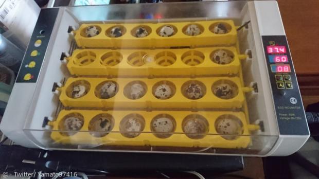 | 야마토가 부화기에 메추리알 19개를 넣었다. |