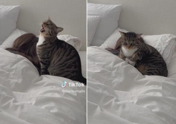오전 6시면 집사를 깨워주는 엄격한 고양이 말리. 주말도 없다. 늦잠은 사치다. [출처: 말리와 멀린의 틱톡]