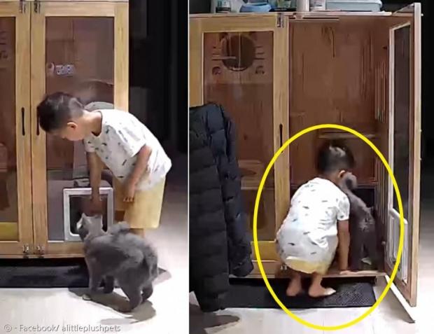 영상에서 꼬마 집사의 방에서 고양이가 나온 후 꼬마 집사가 따라 나온다. 꼬마 집사는 거실 불부터 켜고, 잘 떠지지도 않는 눈을 비비며 거실 수납장 문을 연다. 그리고 고양이 급식기 버튼을 눌러서 밥을 준다.