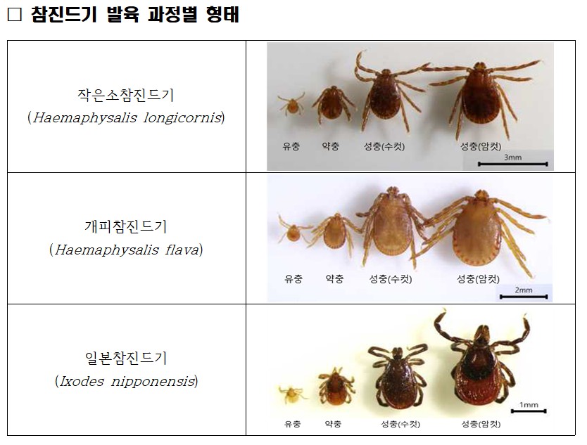 특히 4월과 5월은 약충 개체수가 가장 많은 시기로, 질병 전파 위험이 높은 단계다. 약충은 봄철 풀밭에서 숙주를 기다리다 동물 체표에 부착해 흡혈한다.