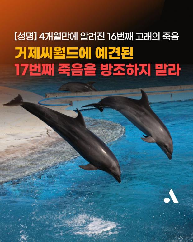 동물자유연대는 또 성명서를 마무리하며 "거제씨월드에는 여전히 9마리 고래가 남아 하릴없이 죽음을 기다리고 있다"고 지적하고 "지금까지 수없이 외쳐온 거제씨월드 폐쇄와 고래 보호 요구가 더는 허공에 흩어져서는 안된다. 16번이나 이어진 고래의 죽음은 이미 한계를 넘어선 경고다. 해양수산부와 경상남도, 거제시는 조속히 거제씨월드라는 고래 무덤을 무너뜨리고, 남은 고래들을 살리기 위한 실질적인 조치를 즉각 시작하라"고 강조했다.
