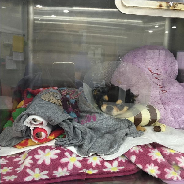 까망이가 동물병원 입원장에서 넋을 놓고 있는데.