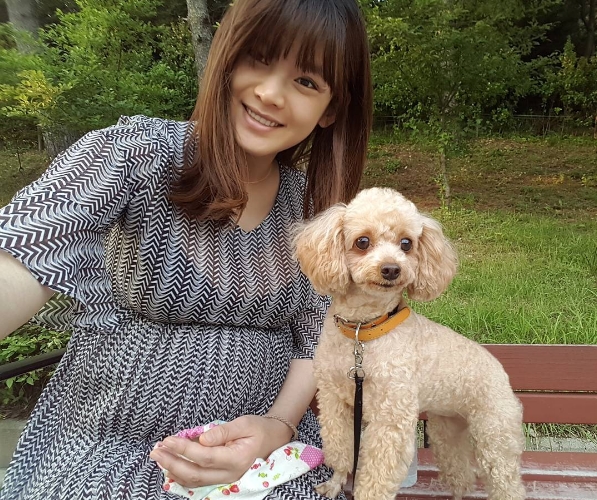 공개된 사진에는 청순한 민낯이 돋보이는 예비 엄마 정가은과 그녀의 반려견 푸들 '루비'의 모습이 담겼다.