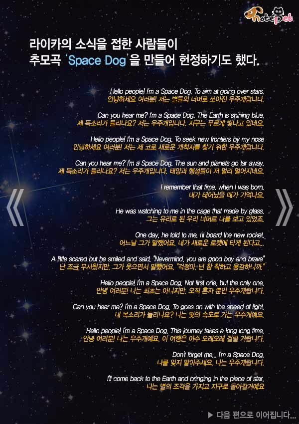 우주비행 1호 유기견 '라이카'를 아시나요 이진주 기자 pearl@inbnet.co.kr 작성일: 2016.11.09 23:00:00 3 0 가 이전 다음 1/8 ⓒ 반려동물 뉴스 노트펫, 무단전재 및 재배포 금지 URL복사 URL로 공유시 전체 선택하여 복사하세요. 닫기 3 목록