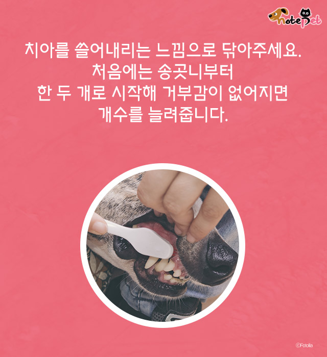 개와 사람은 구강구조와 양치 방식이 다릅니다.