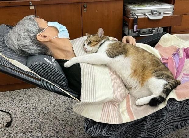 [노트펫] 대만에서 고양이가 할머니의 뇌출혈을 제일 먼저 감지하고, 할머니 곁에 꼭 붙어지내며 걱정했다. 평소와 다른 고양이의 행동 덕분에 가족이 할머니의 병을 제때 발견해 치료할 수 있었다.