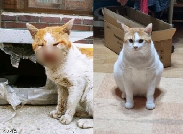 [노트펫] 길고양이가 집 생활을 하자 180도 달라진 모습이 흐뭇함을 자아내고 있다.