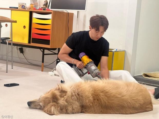 씨앤블루 이정신, 반려견 '심바' 몸단장해 주는 일상 공개..."애비 노릇 이쁜 아들"