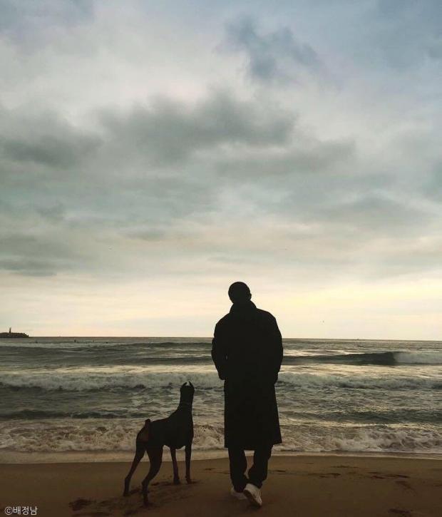 지난 15일 배정남은 자신의 인스타그램에 "딸램씨랑 첫 바다 갔던 날 같은 곳 바라보네♥"라는 글과 함께 한 장의 사진을 게시했다.
