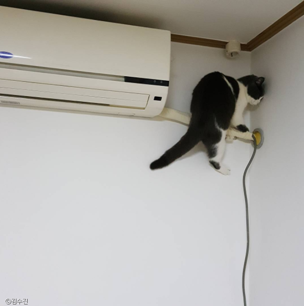 "처음에 장식장에서 문 위로 바로 점프를 하니까 떨어지더라고요. 그다음엔 연구를 했는지 저희가 지나가길 기다렸다가… 하하."