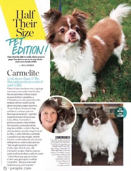 커터는 치와와 노령견의 체중을 23파운드에서 9파운드로 감량시킨 경험이 있기 때문에, 카멜라이트의 다이어트에 자신감이 있었다. 그래서 커터는 이 치와와를 입양하기로 했다.
