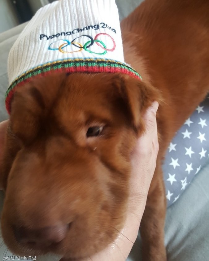 공개된 사진에는 평창동계올림픽 모자를 쓰고 있는 덩치의 모습이 담겼습니다.