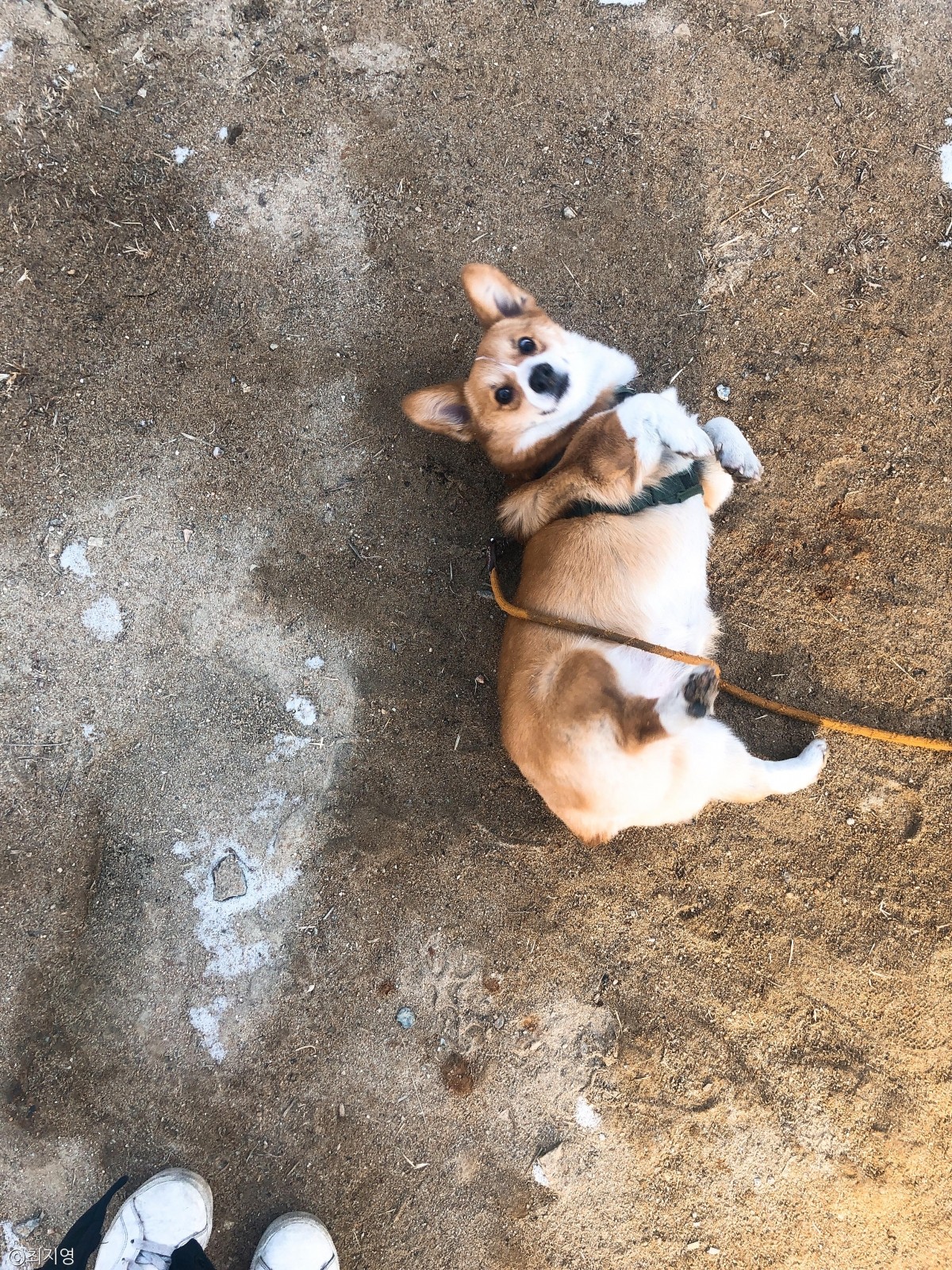 "집에 가기 싫어!" 바닥에 드러눕는 강아지