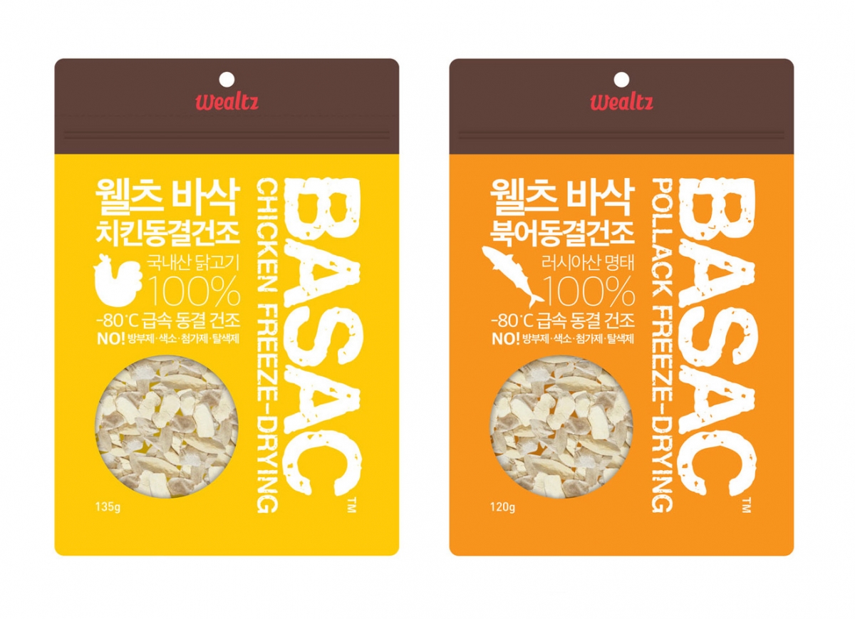 '웰츠 바삭' 2종은 영하 80도에서 신선한 재료에 열을 가하지 않고 수분을 급속 동결시켜 건조하는 방식으로 제조됐다.