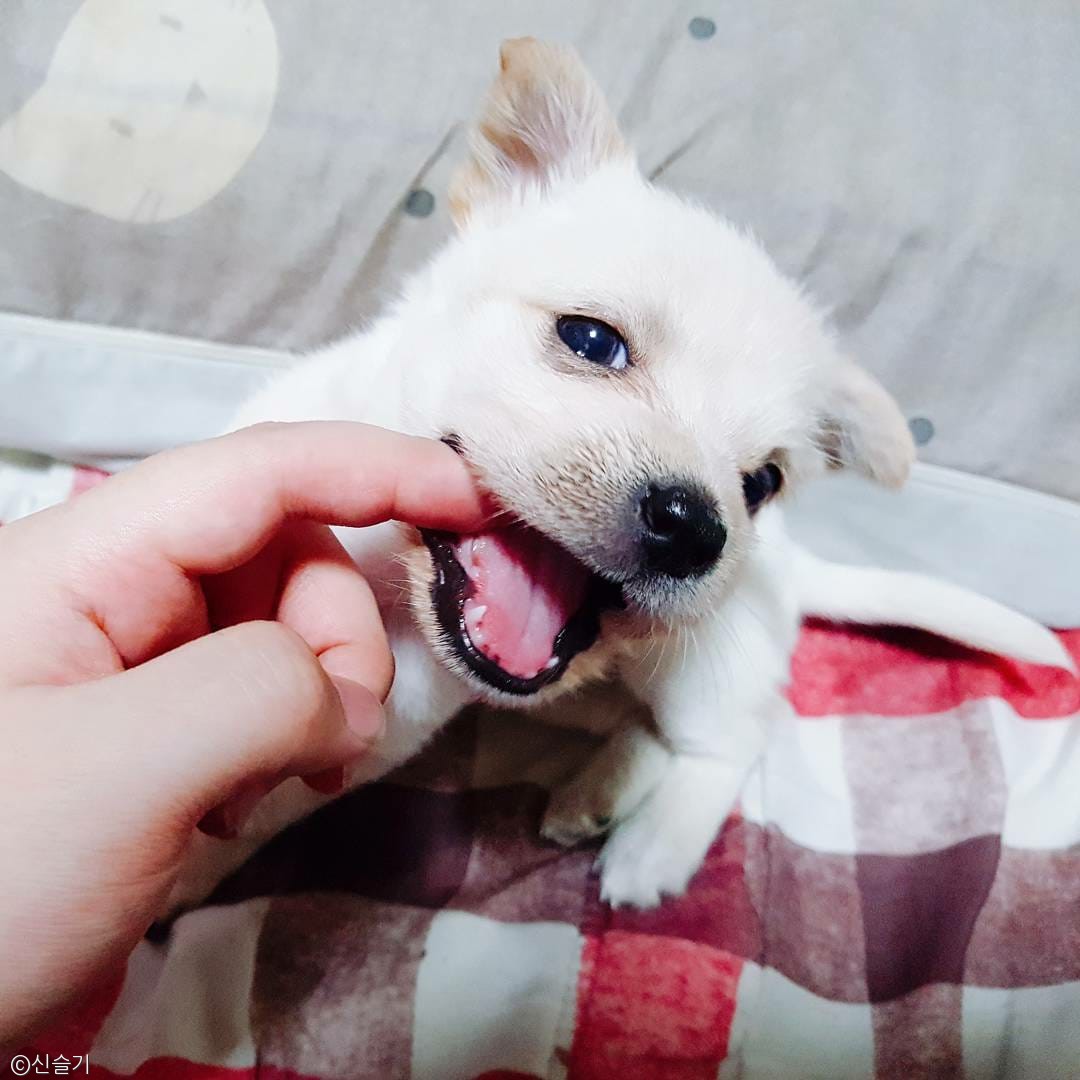 어미젖도 떼기 전에 개농장으로 팔려갈 뻔 첫째 '라떼'를 입양한 슬기 씨.