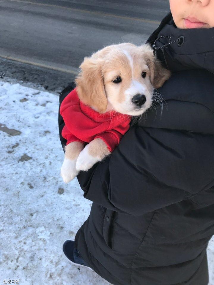 "털은 골든 리트리버처럼 나지만 얼굴에 흰 선과 흰 양말을 신은 것 같은 발이 모찌만의 매력 포인트다"고 자랑한 다운 씨는 "하지만 그것 때문에 지나가는 사람들이 똥개다, 잡종이다, 하는 소리를 들어 마음이 아플 때도 많다"고 말했다.