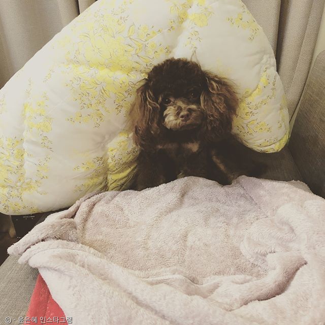 [노트펫] 배우 윤은혜가 이불을 좋아하는 반려견의 모습을 공개했다.