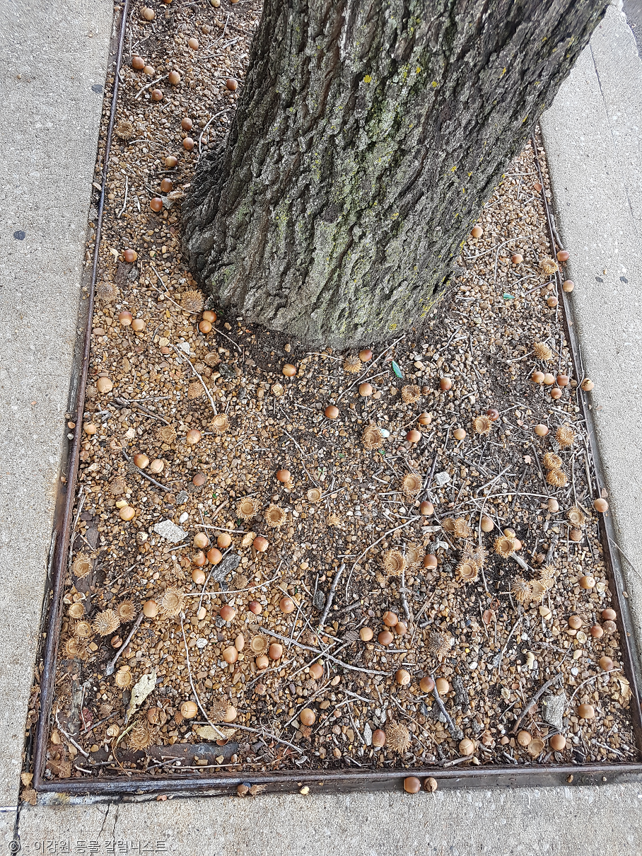 도토리를 밟으며 시내를 걷는 것은 한국에서는 어려운 일이지만, 미국 중부의 도심에서는 그리 어려운 일이 아니다. 흔한 풍경일 뿐이다.