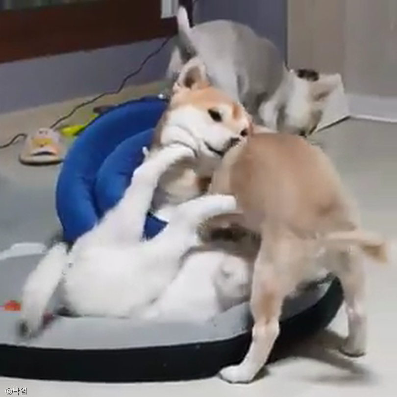 박열 씨는 지난 6일 한 반려동물 커뮤니티에 "아빠는 고자 돼서 고독 씹는데 앞에서 촐랑거리는 딸내미들, 그 와중 엄마는 맘마 먹느라 무신경"이라며 영상 하나를 게재했다.