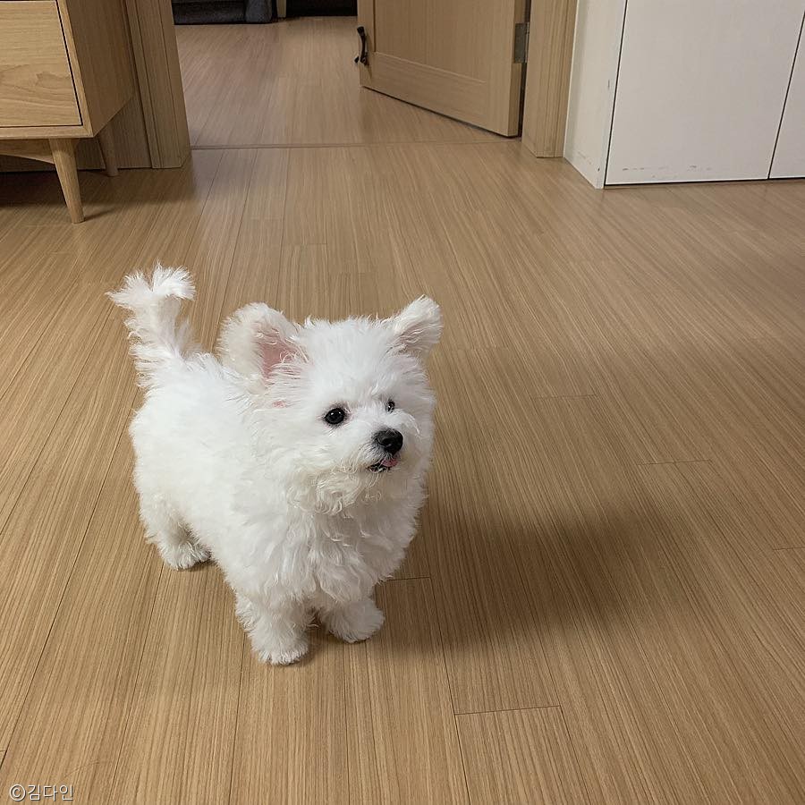 땅땅이는 비숑 프리제의 피가 흐르는 3개월령 강아지다.