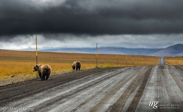 스위스 출신의 야생동물 사진작가 마르셀 그로스(Marcel Gross)는 지난해 늦여름 캐나다 북서부 유콘준주(準州)를 여행하다가 곰 부부를 발견하고 이를 기록으로 남겼다.