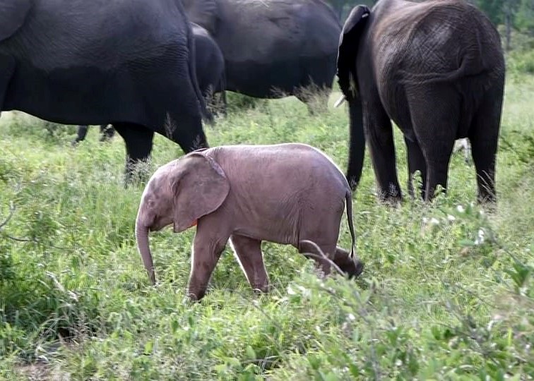분홍 코끼리는 태어난 지 3주가량 된 새끼 코끼리로, 크루거 국립공원 내 말라말라 야생동물 보호구역에서 코끼리 가족 무리에 섞여 지내고 있다.