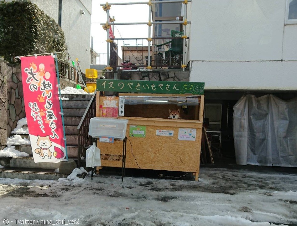 [노트펫] 일본 노점에서 군고구마를 파는 시바이누 개 점장이 화제라고 온라인 예술잡지 보어드판다가 최근 소개했다.