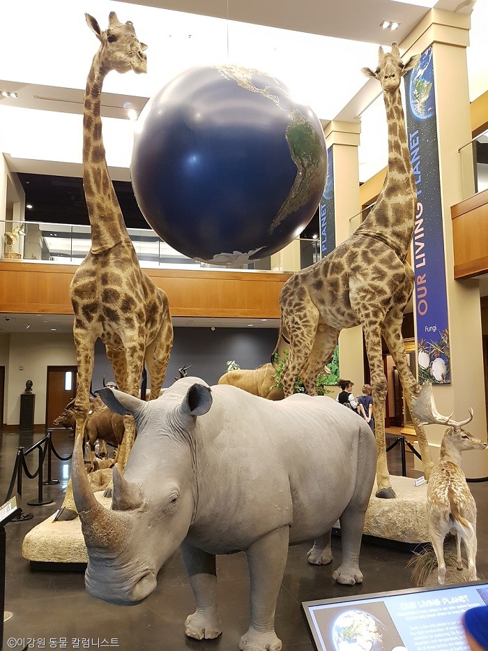 박물관 안내데스크를 통과하면 다양한 표본들이 전시된 공간이 나온다. 그런데 전시관의 초입에는 독특한 외모의 거대한 고양잇과동물이 눈에 들어온다. 얼핏 보면 사자 같기도 하고 자세히 보면 호랑이의 무늬를 가지고 있기도 하다.