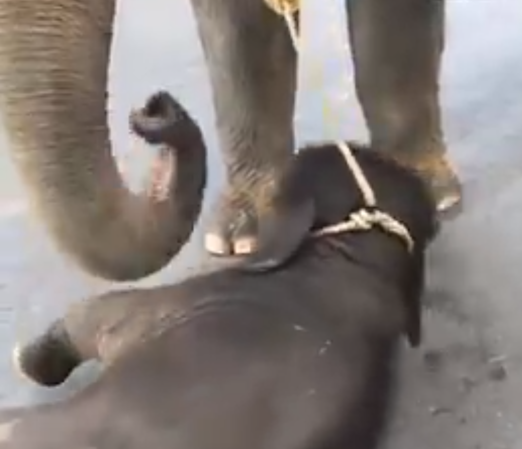 영상을 촬영한 관광객은 "새끼 코끼리가 더위에 지쳐 보였다"며 "영상에 담긴 코끼리 말고도 많은 새끼 코끼리가 관광객을 태운 어미 코끼리에 묶여 강제로 끌려갔다"고 말했다.