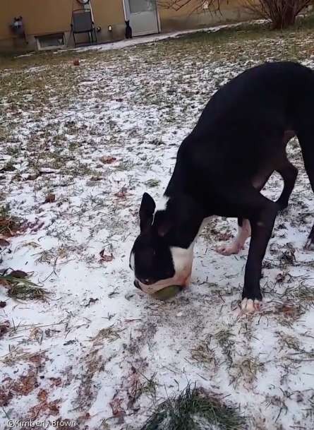 브라운은 "눈이 온 후 집 밖으로 내보내자마자 맨슨은 공을 어디에 두고 왔는지 바로 알고 달려갔다"며 "우리의 아침 일과는 거의 항상 몇 차례의 공놀이를 하는 것이기 때문에, 맨슨은 평소처럼 공으로 달려가 그것을 집어내려 했지만 그럴 수 없었다"고 말했다.