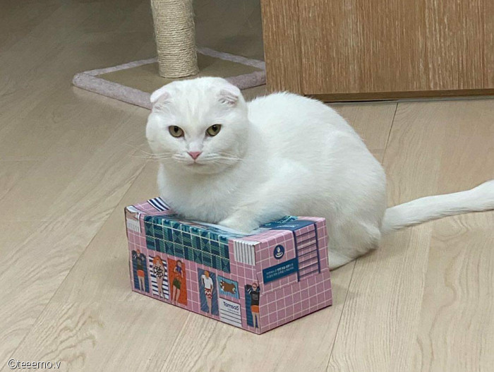 최근 집사 T씨는 다 쓴 각티슈 상자를 버리기 위해 한 쪽에 뒀단다.