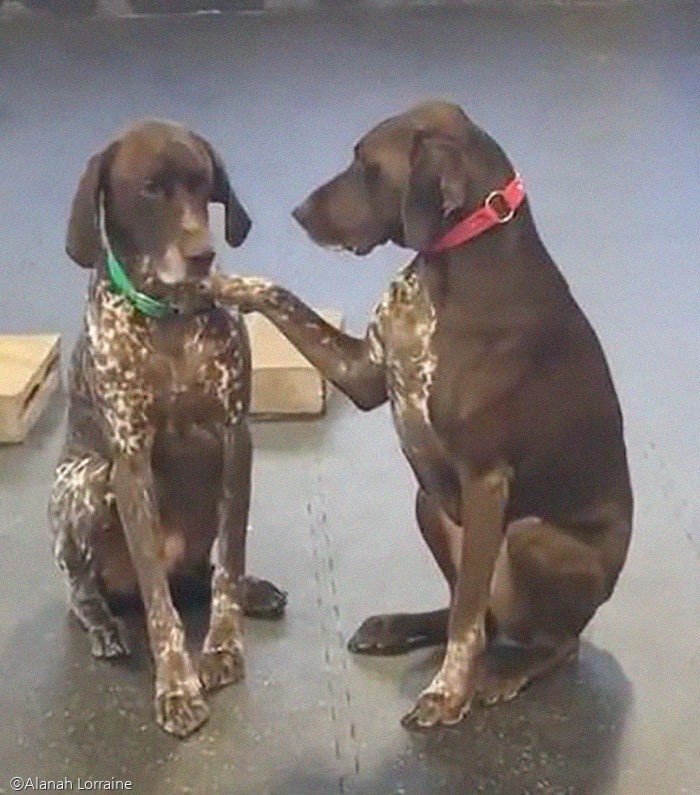 알라나가 공개한 영상 속에서 루비는 다른 강아지들의 얼굴을 앞발로 쓰다듬고 있다.