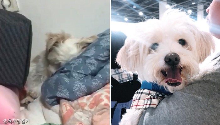 2015년 보호소에서 입양이 됐다 다시 파양이 됐다는 쪼맹이. 그런 쪼맹이의 사연을 알게 된 육개맘일기 씨는 단기 임시보호를 결심했단다.