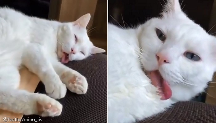 지난 12일(현지 시간) 일본 익사이트뉴스는 입 벌리고 자다 혓바닥 일시 정지 상태가 된 고양이 '세츠'의 사연을 전했다.